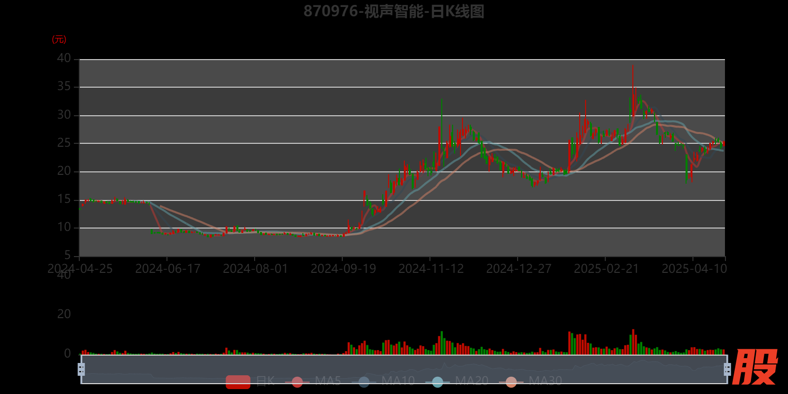 以4月25日收盘价计算,视声智能目前市盈率(TTM)约为33.88倍,市净率(LF)约6.32倍,市销率(TTM)约6.85倍。