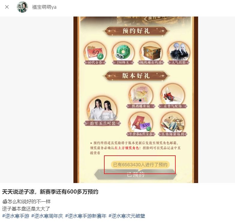 这不,就有玩家晒出逆水寒新版本的预约人数,仅仅一天就拿下快700万的预约量,这在目前市场上绝对独一档的存在。